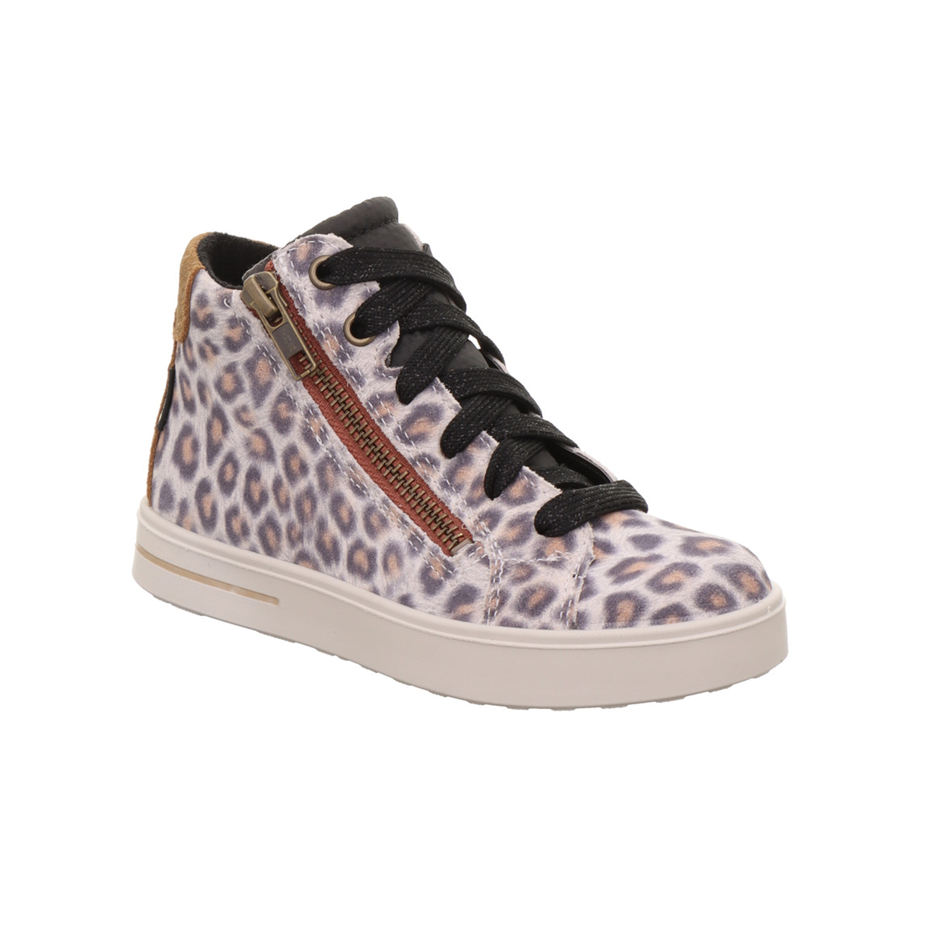 knöchelhoher Bootie Leoprint, beige, braun, schwarz, Schnürung und Reißverschluss, Goretex, leichtes Futter, Superfit