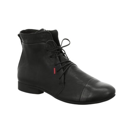 Schnürstiefelette aus Glattleder mit seitlichem Reißverschluss, loses Fußbett, leichtes Warmfutter, schwarz mit roter Sohle, Think