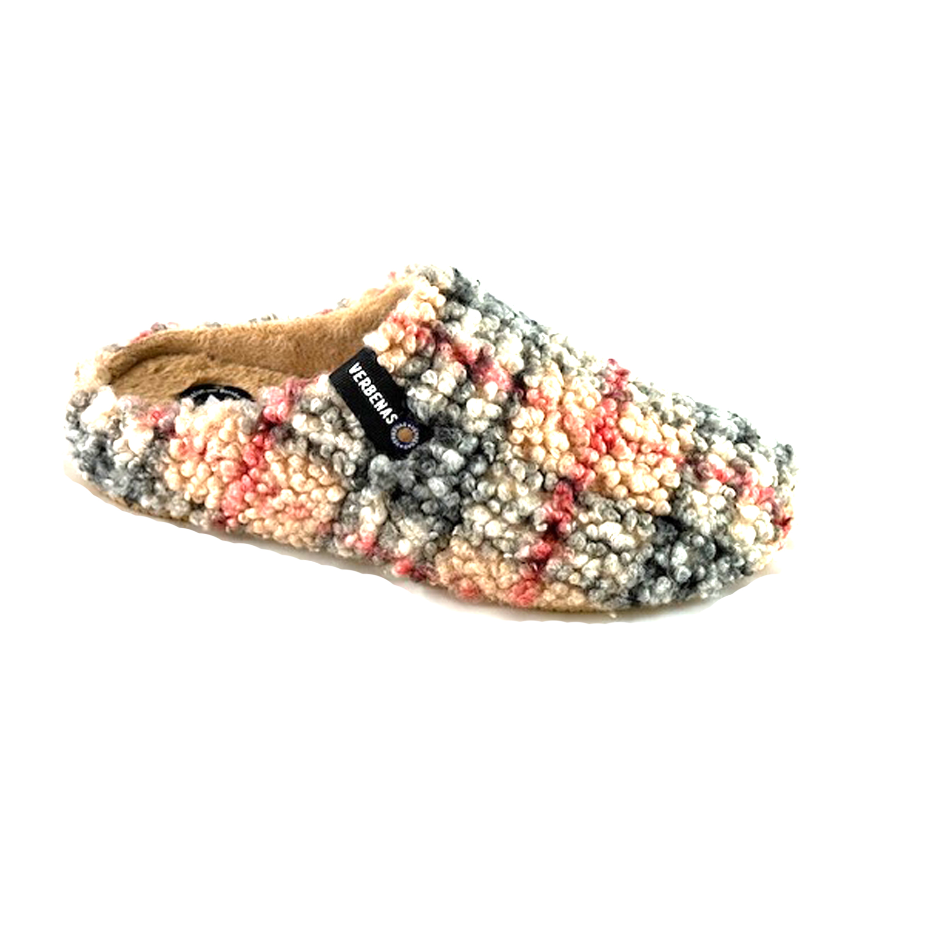 Pantoffel, Obermaterial Textil, Gummisohle, Felloptik, rot- beige-grau- karriert, Verbenas