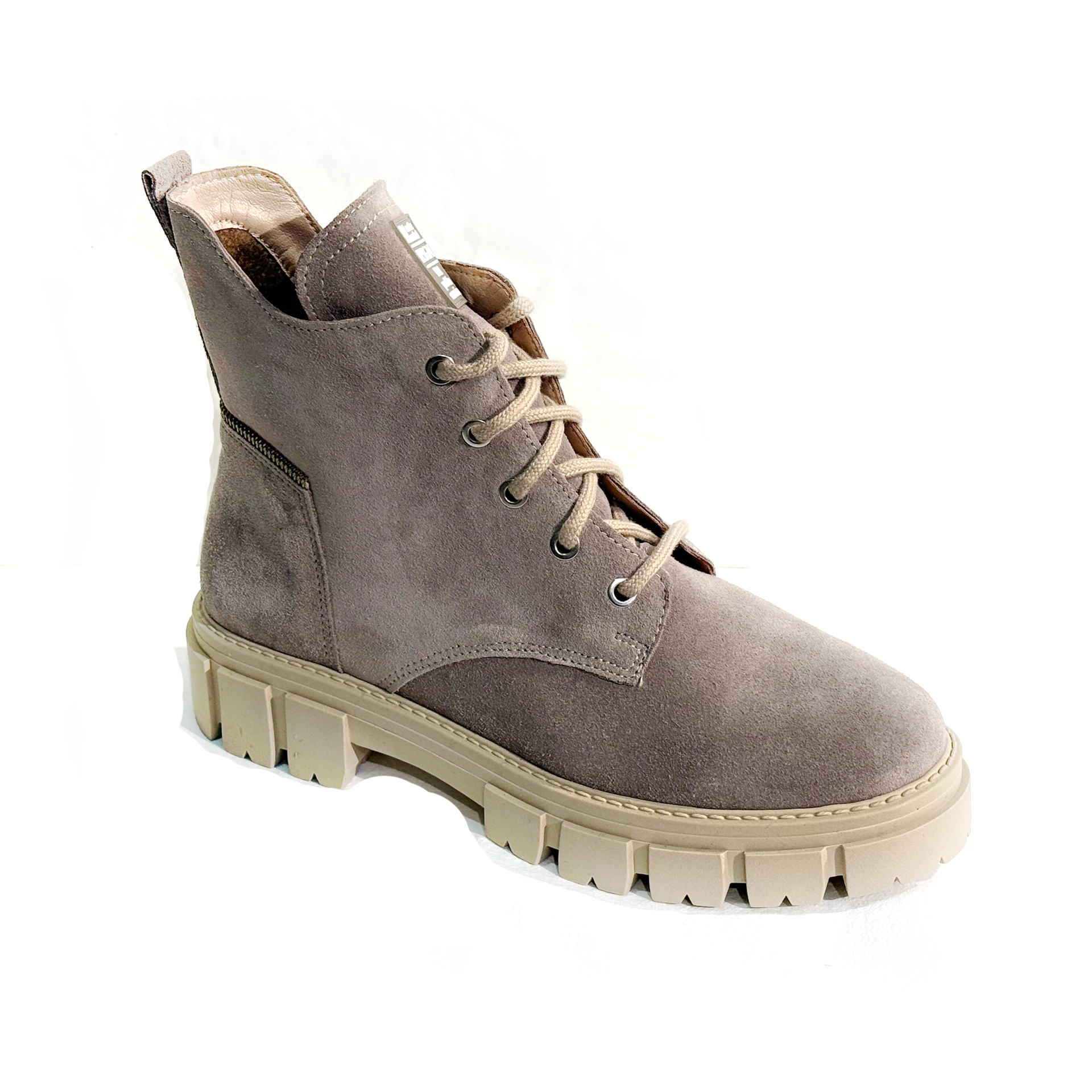 Schnürstiefelette mit flachem Absatz und dicker Sohle, Reißverschluss, leicht gefüttert, cremefarben Velourleder, Contes