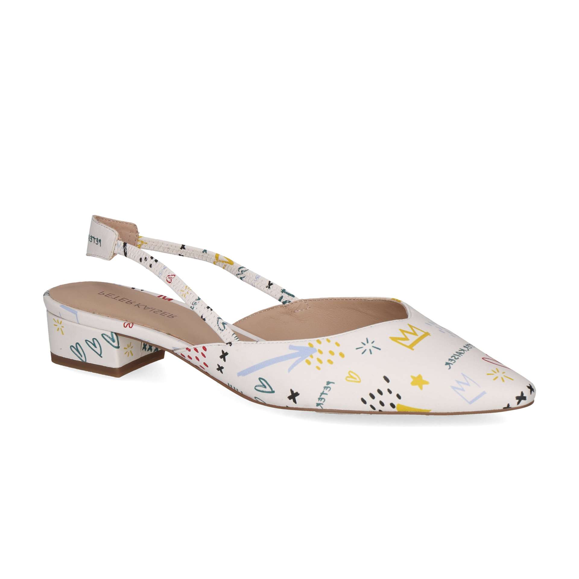 spitzer Slingballerina, flacher Absatz, Glattleder, weiß- bunt, Peter Kaiser