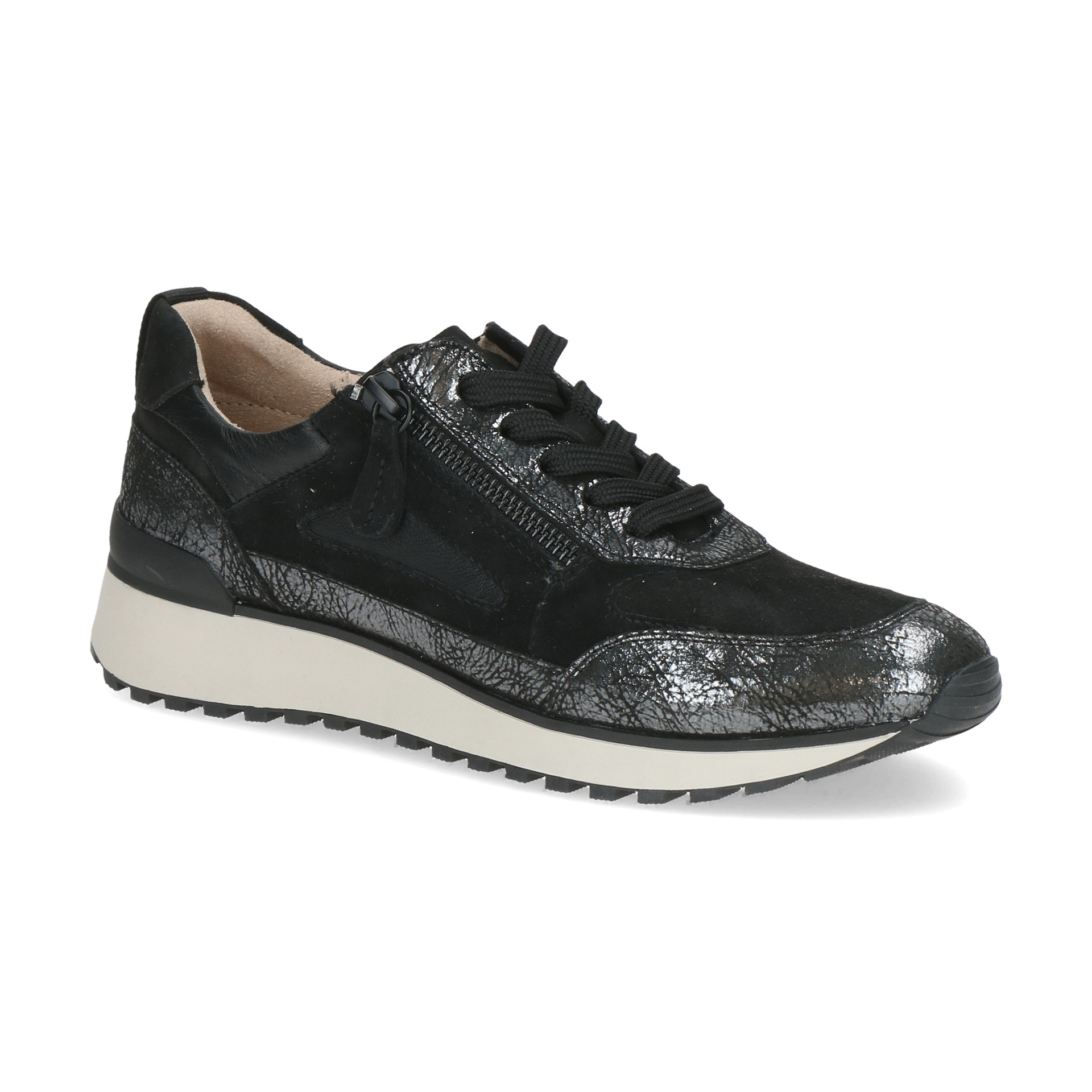 Sneaker von Caprice, loses Fußbett, weiches Glatt- und Nubukleder, seitlicher Reißverschluss, Glanzeffekte, schwarz, Caprice