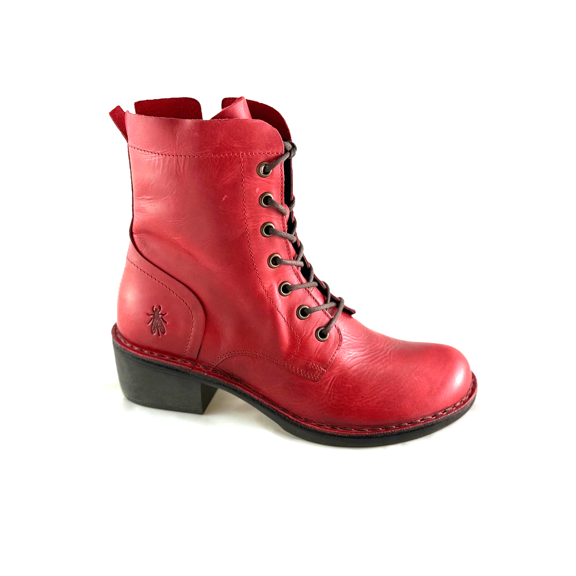 Schnürstiefelette mit kleinem Absatz,  Glattleder, rot, Fly London
