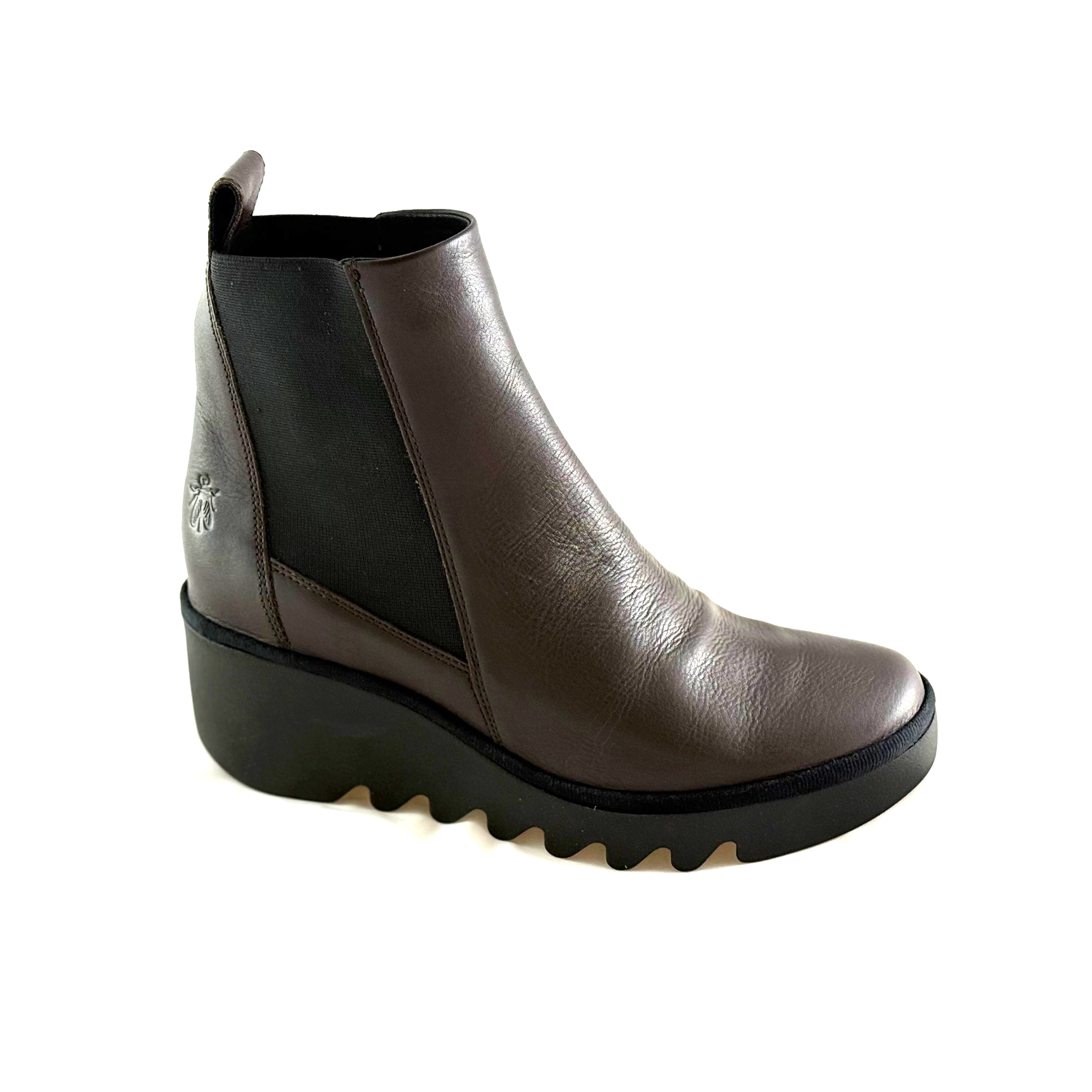 Chelseaboots mit dicker Keilsohle,  Glattleder, dunkelbraun, Fly London