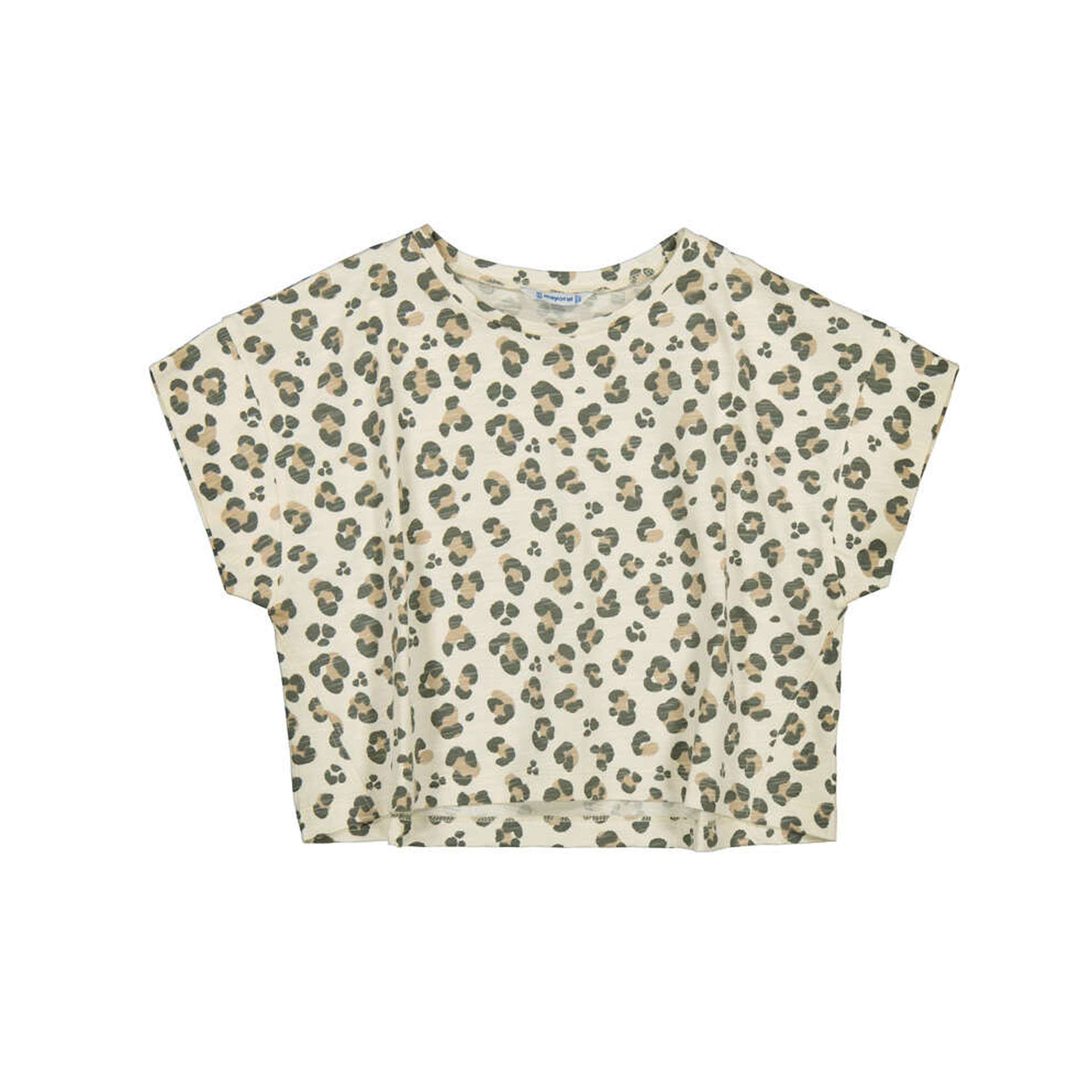 T Shirt, kurz, Leodruck, creme, braun, schwarz,  Mayoral